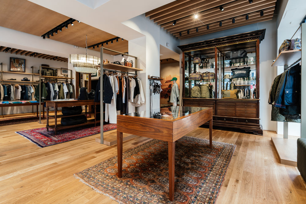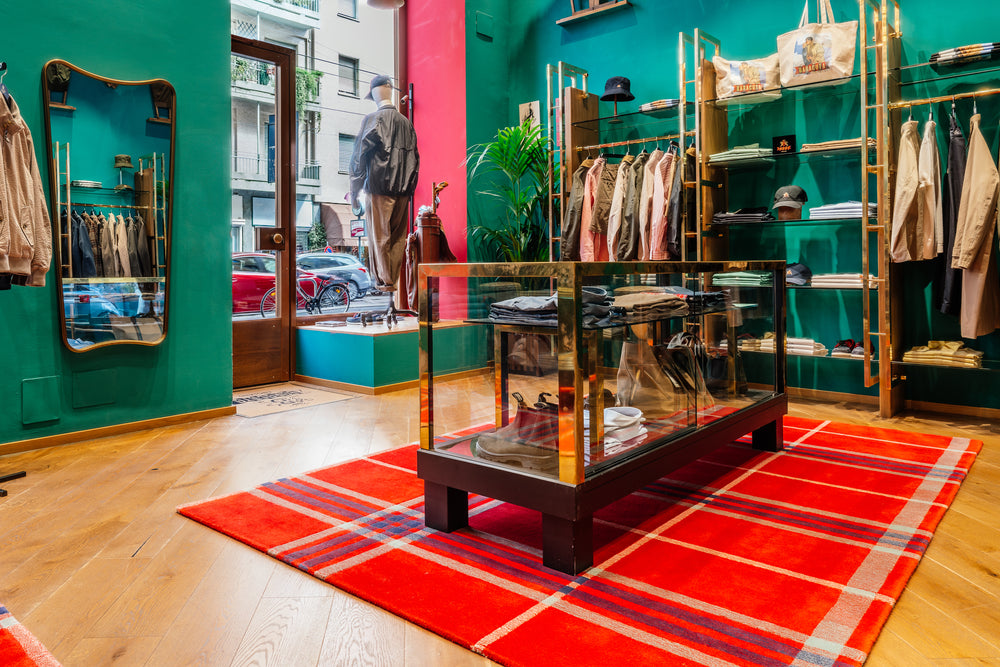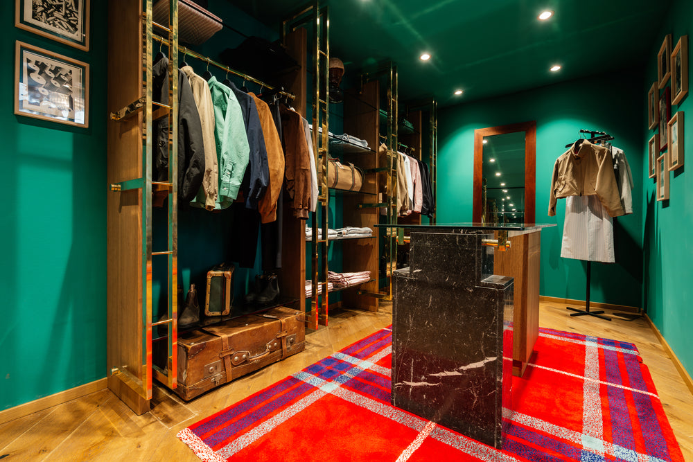 The Flagship Store in Milan, at Corso Genova 1, is a unique store of its kind, with an atmosphere that transports Baracuta enthusiasts directly to the brand’s British home. The store, opened in 2025, is a tribute to the brand’s iconic status and authenticity. The interior space has been furnished with unique pieces, that create a sleek environment featuring signature Baracuta elements, such as the Fraser Tartan carpet that recalls the lining of the brand’s legendary G9 jacket.