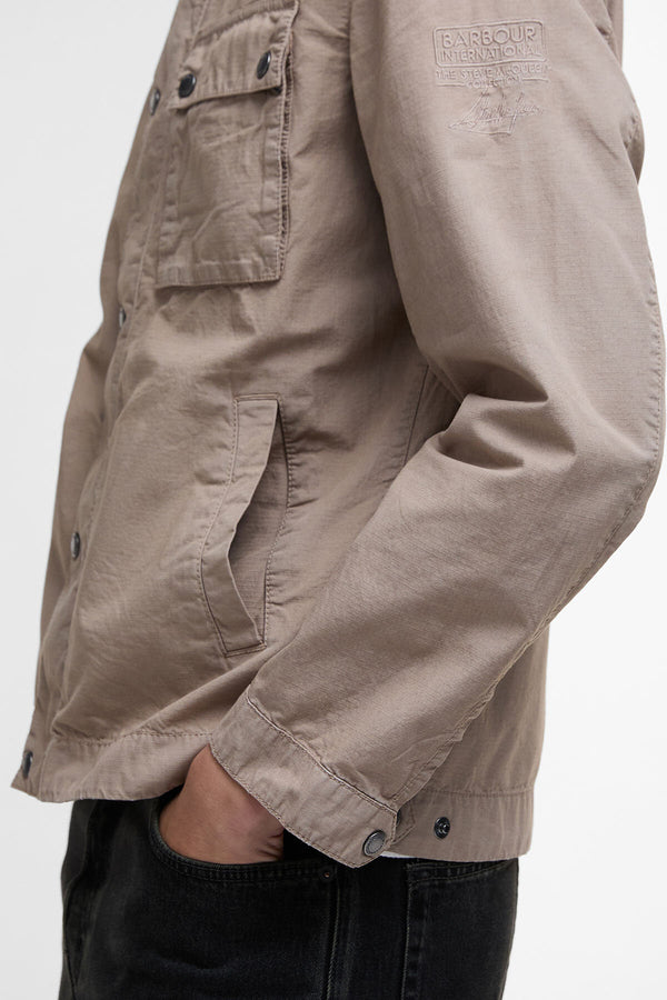From the Steve McQueen collection, the Barbour International Workers Wax jacket adds a layer of subtle sophistication to any outfit, featuring square quilted lining for comfort and warmth as well as a corduroy collar for a complementary fabric contrast. A studded front placket conceals a zip for weather protection with adjustable cuffs and hem for the perfect fit. Two welt pockets and a studded chest pocket add useful storage space without foregoing style. A Barbour International Steve McQueen embroidery patch features to the wearer's left chest.