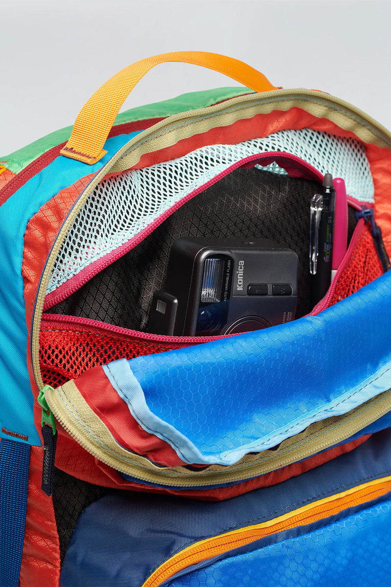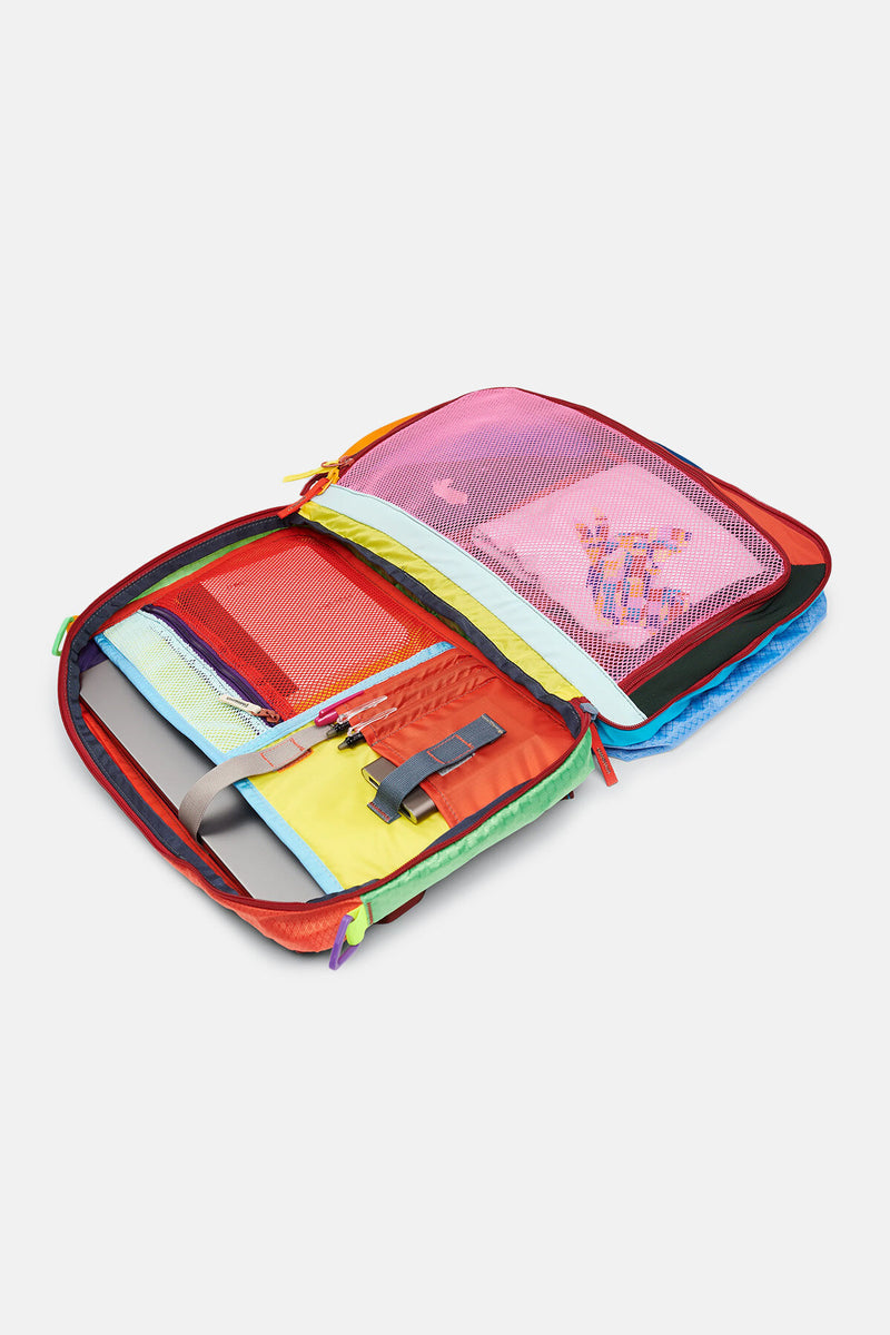 The Cotopaxi Tasra 16L backpack is designed to meet the needs of daily office life. The backpack has several compartments to keep everything organized. Inside, you'll find a padded compartment for your laptop and space for sportswear or a change of clothes. The external pockets keep your electronic accessories organized. The comfortable straps and various belts complete the backpack's look. As part of the Del Día collection, each Tasra is unique, as it is made by a team that has creative control over the final look of each piece.