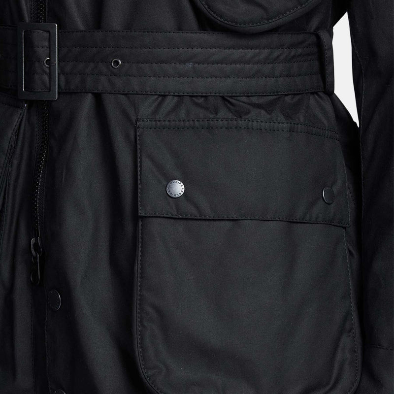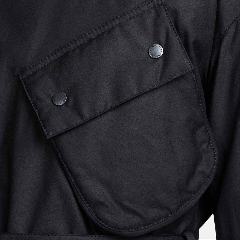 Realizzata in cotone cerato da 6 once, la giacca cerata Barbour International Lenon vanta una chiusura frontale con zip angolata per un look contemporaneo. Caratterizzata da due tasche inferiori a soffietto foderate in cotone e una tasca sul petto angolata per un look da motociclista, questa giacca ha una cintura regolabile con un dettaglio di chiusura con fibbia. Un’etichetta Barbour International x Engineered Gartments è presente sotto la patta della tasca sul petto.