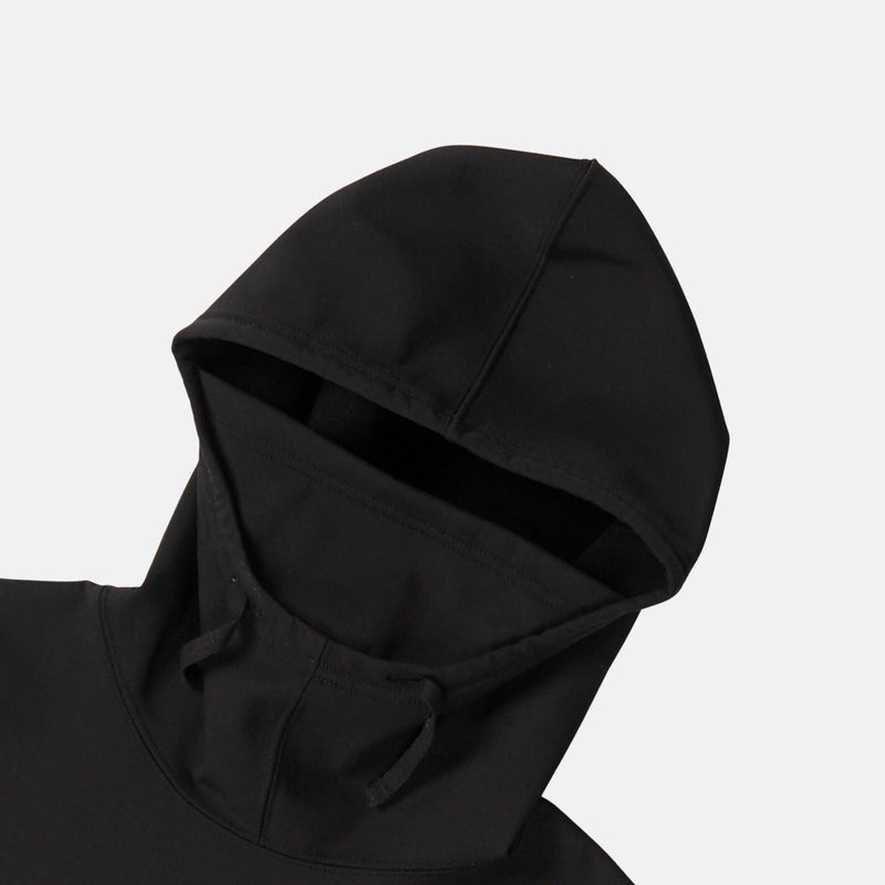 Gilet con cappuccio con coulisse e maschera sul viso, rifinito con un trio di lacci - due dei quali si legano al lato del corpo.