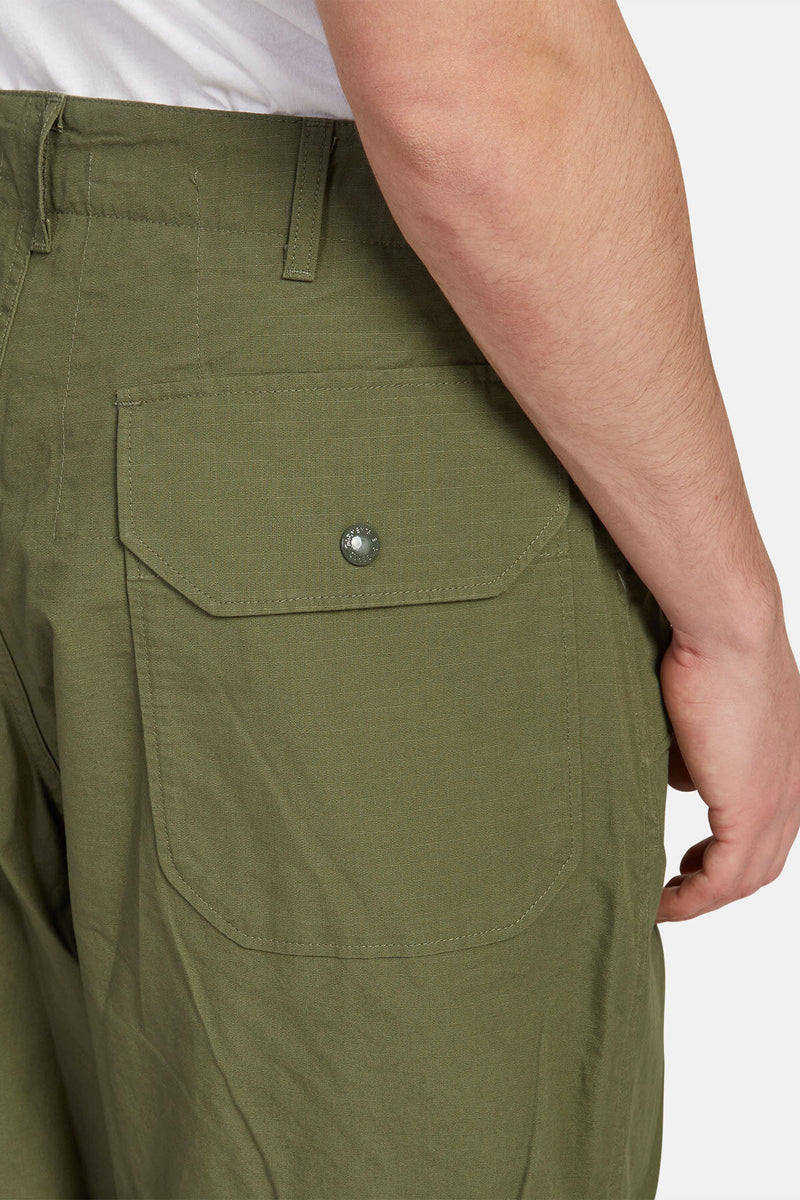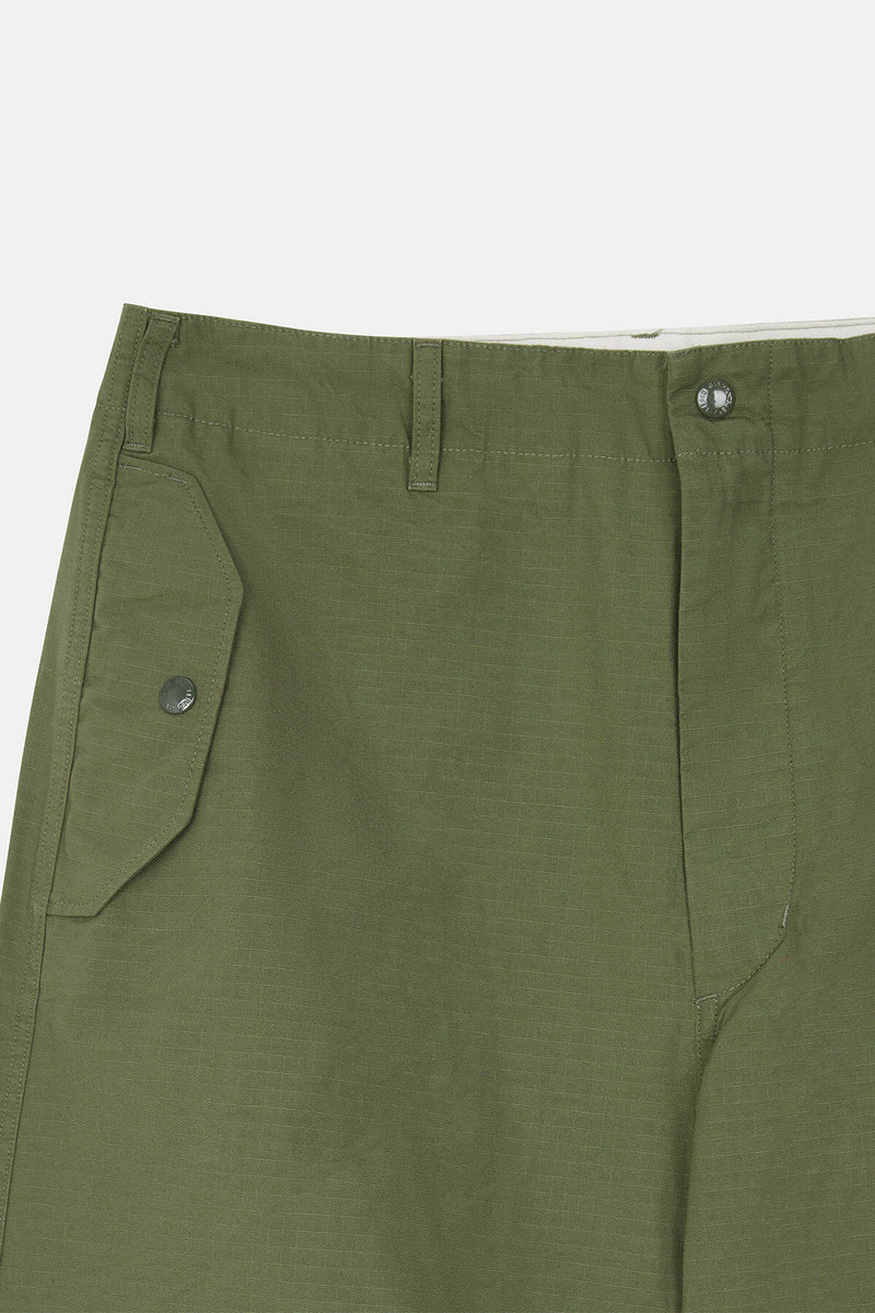 Pantaloni creati pensando al taglio dei sovrapantaloni militari. La caratteristica principale è la forma ampia come suggerisce il nome. Il design è molto semplice anche se si possono notare dettagli da pantalone militare come le tasche con patta, rinforzi sulle ginocchia e coulisse al fondo. La versione in cotone ripstop è interessante anche per la sua texture che viene valorizzata man mano che lo si indossa.