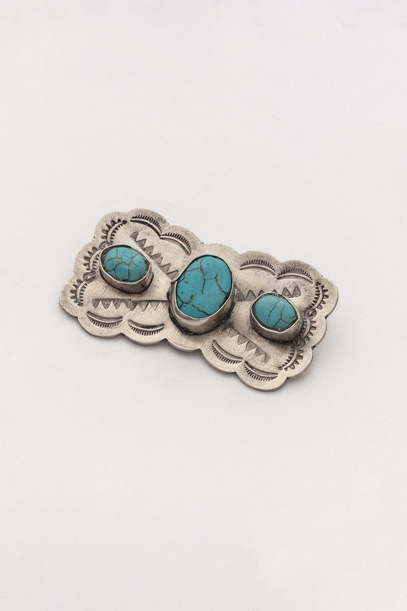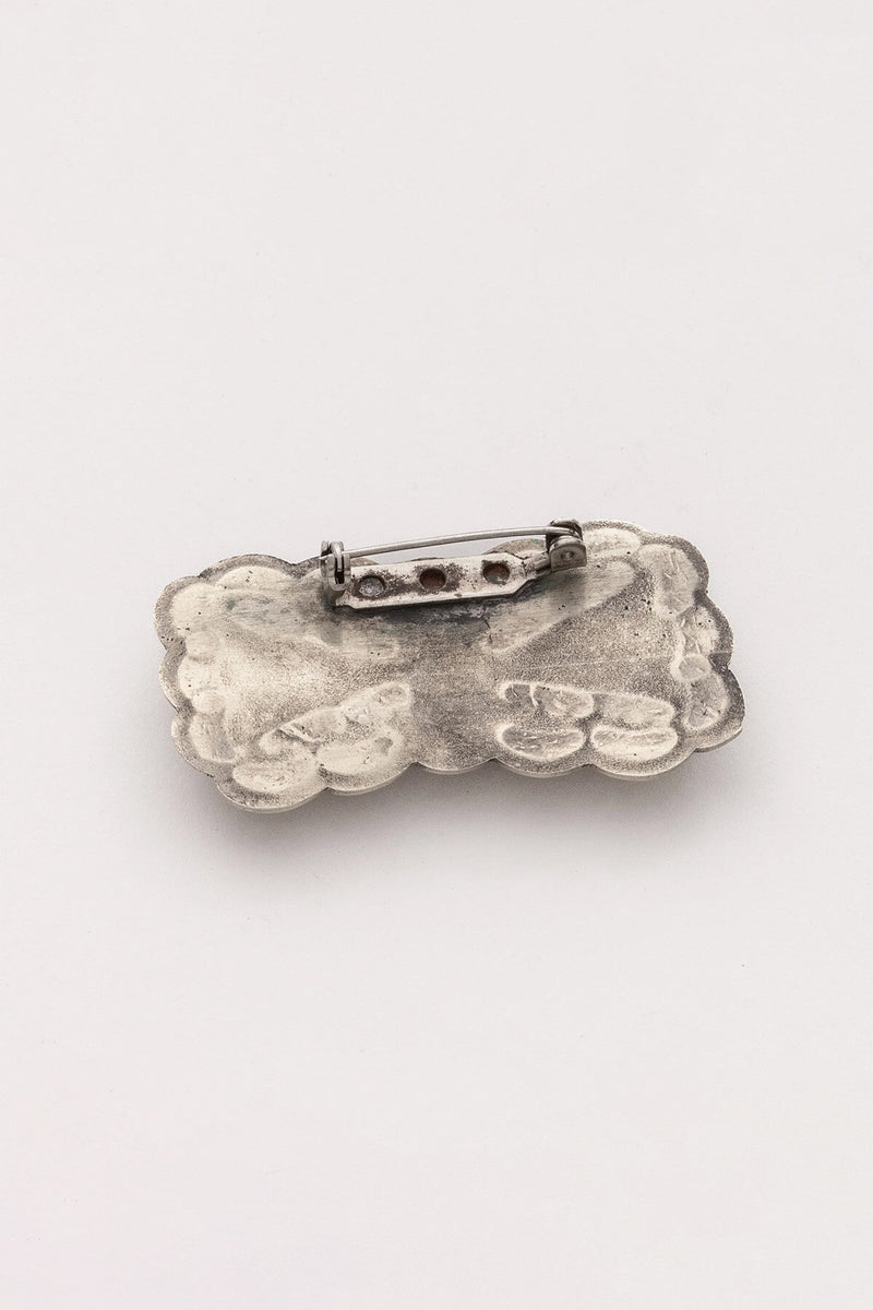 Traendo ispirazione dal ricco patrimonio degli argentieri Navajo, questa spilla vanta una finitura vintage che emana un'aria di autenticità e un fascino senza tempo. L'intricata lavorazione a sbalzo e la lavorazione manuale ne accrescono il fascino rustico, rendendola un accessorio perfetto per ogni occasione.